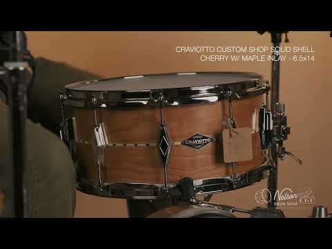 Craviotto Custom Shop Cherry w/ Maple Inlay - 6.5x14 Video demo in the photo scroll! Solid-ply Cherry Shell 45 Degree Bearing Edges Trick Throw Off Oil Rubbed Finish Triple Flanged… Read more