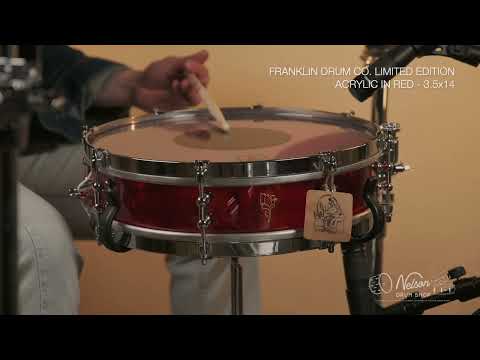 Franklin Drum Co. Limited Edition Acrylic in Red - 3.5x14 Check out the video demo in the photo scroll! New Franklin! Features Limited Edition Franklin Flower Badge, No-Flange hoops w/ clips, 8x… Read more