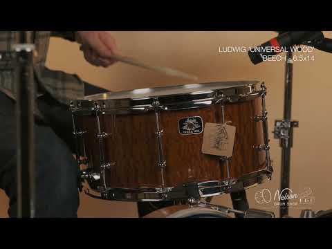 New, Ludwig 'Universal Wood' Beech - 6.5x14 Check out the video demo in the photo scroll! 6.5 x14" 6 ply 7.5 mm Beech shell with an outer ply of exotic… Read more